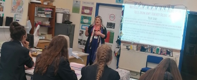 The Design & Technology department had a visit from Amy Heather Bridal Wear today to discuss her bridal business and suitable materials and decorative techniques to use in their designs #year10 #industryprojects #weddingdress #weddingdressdesign