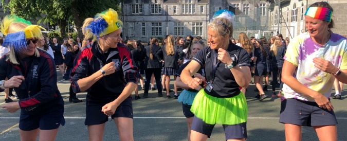 In celebration of TSArt's week, the PE Team led an 80's style aerobics session this morning, for the theme of 'moves', before the start of lessons.