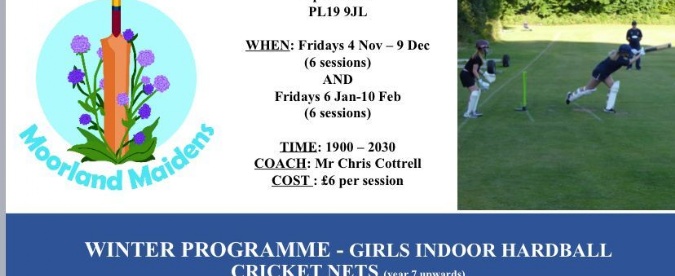 The Moorland Maidens Cricket Team, in conjunction with Yelverton Bohemians Cricket Club (YBCC) and Buckland Monachorum Cricket Club, have launched their winter nets training sessions for girls, at Mount Kelly Prep Sport Hall. Sessions are available for girls in Year 7 upwards and all abilities are welcome.