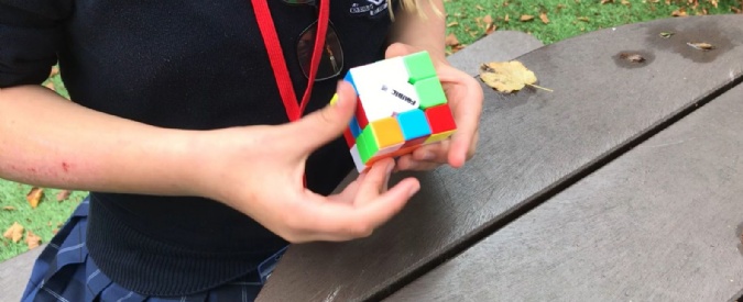Grace, 7T show off her impressive skills with her rubik's cube.