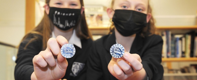 Darcey & Elizabeth, 7K, are awarded their 25 book reading acheivement badge.