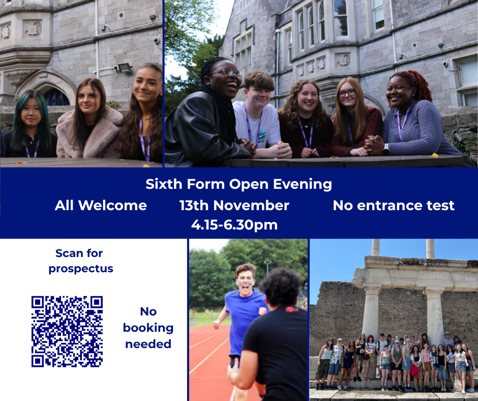 We would like welcome all prospective students to our Sixth Form open evening on Thursday 13th November, from 4.15pm to 6.30pm. Booking is not required.