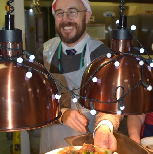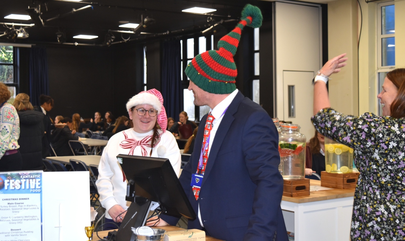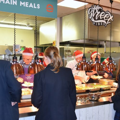 This week, KS3 students enjoyed a delicious Christmas lunch in true festive style! The canteen was filled with laughter, Christmas music, and the enticing aroma of a traditional holiday feast. Adding to the joyful atmosphere, staff donned aprons and smiles to help deliver the lunch service, creating a special moment of togetherness.