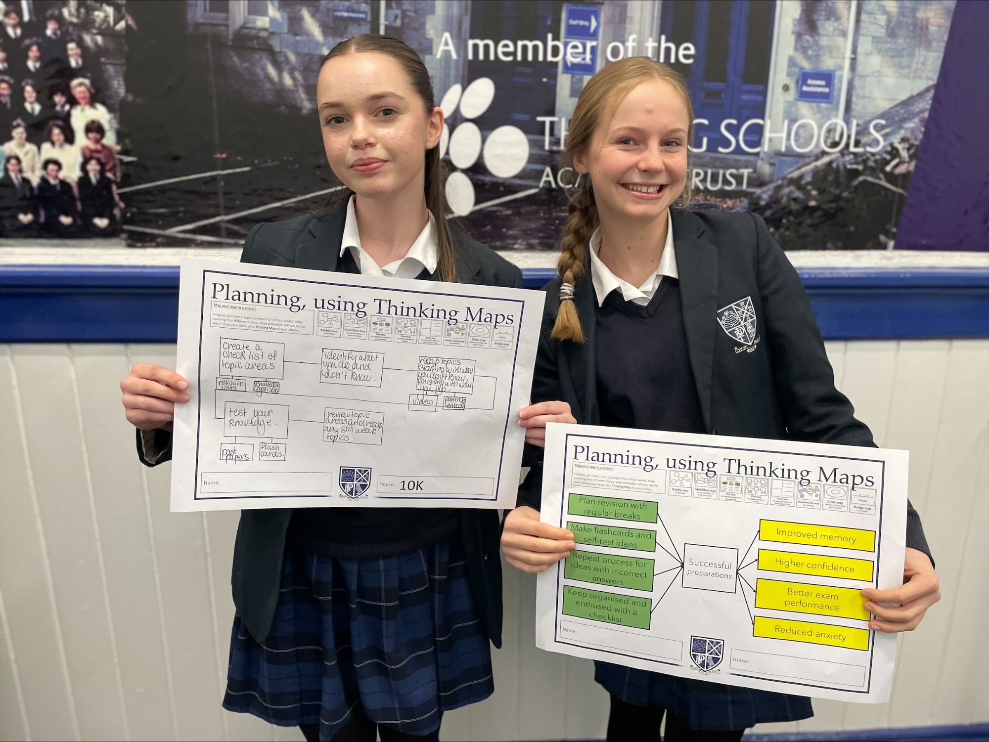 - Thinking maps are visual-verbal tools mapped to specific cognitive skills, often used to organise thought (planning).